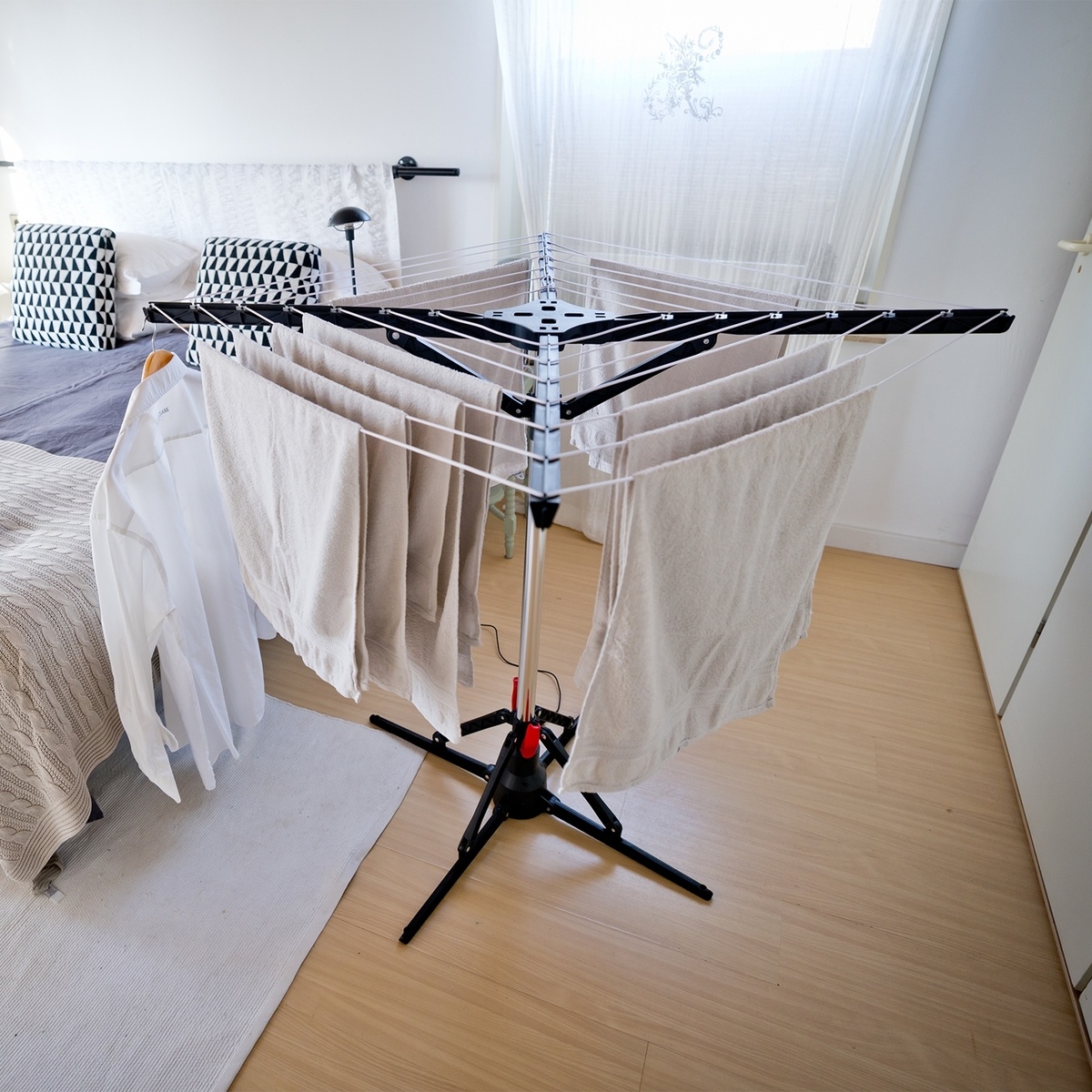 Nooit meer in de weer met droogrekjes of wachten tot het zonnetje eindelijk doorbreekt. Met de Nexxt Elektrische Droogmolen droogt u uw was snel, efficiënt en zonder zorgen, het hele jaar door. Een slimme oplossing voor wie gemak en comfort waardeert.