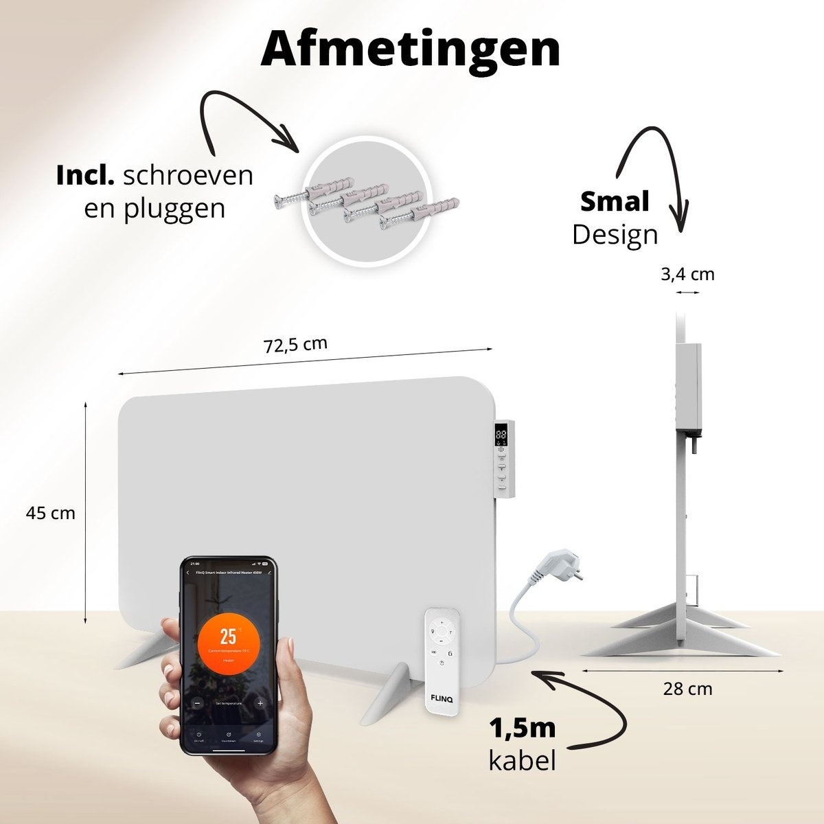 U kent het vast: een frisse ochtend of een kille avond waarop de centrale verwarming eigenlijk te veel kost voor even extra warmte. Met de FlinQ Slimme Infraroodverwarming geniet u direct van een aangename warmte, precies waar u zit. Deze slimme infraroodverwarming is stil, energiezuinig en past moeiteloos in uw interieur. Ideaal voor comfortabel en bewust verwarmen binnenshuis.