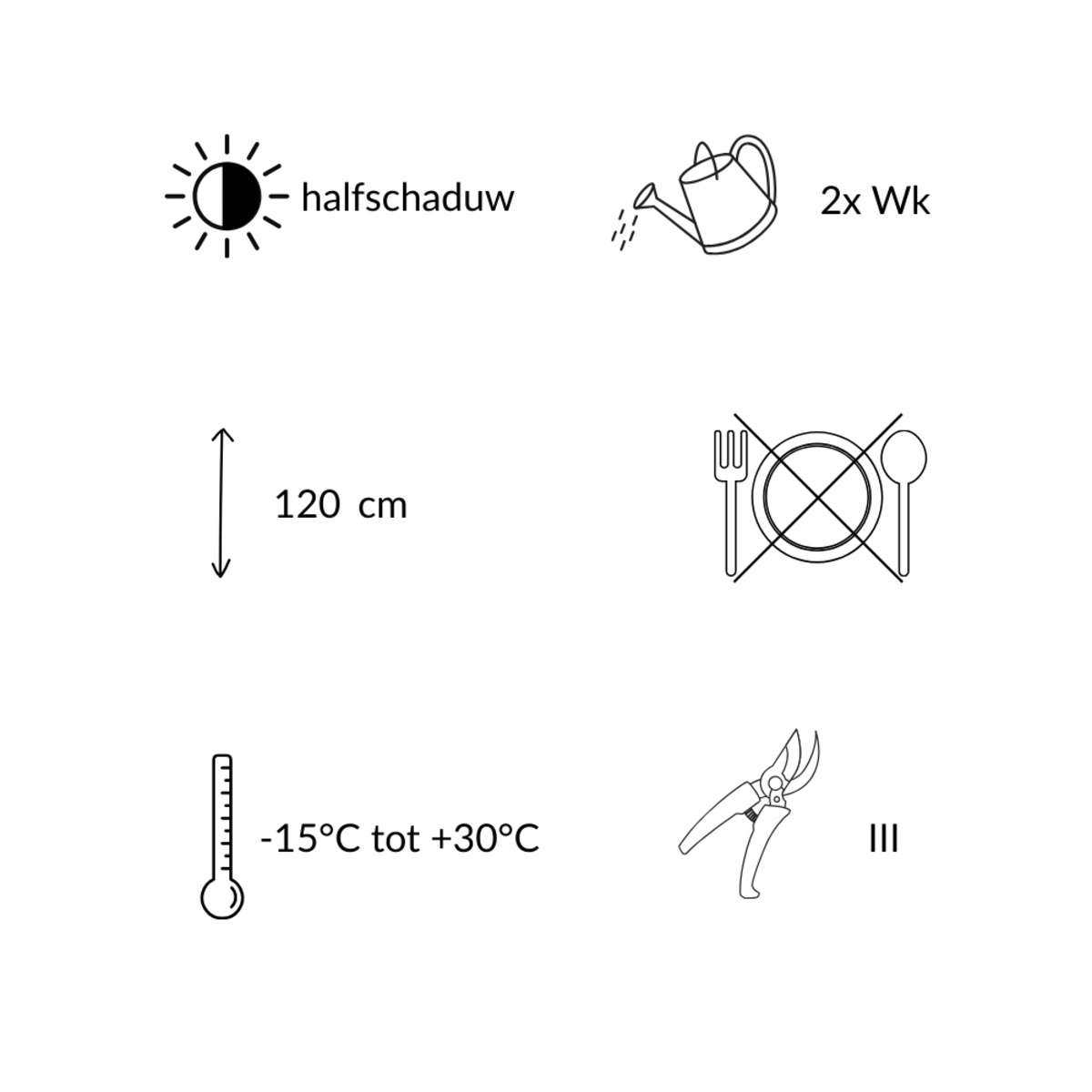 • Volgroeide hoogte: circa 120-150 cm (afhankelijk van variant)