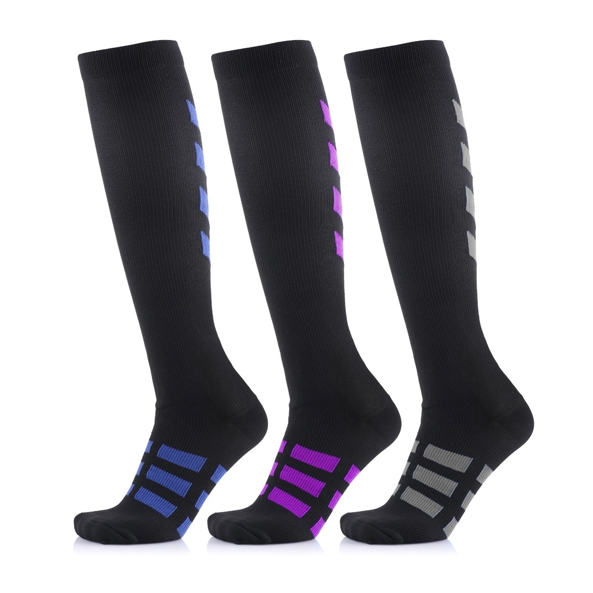 Verkrijgbaar in stijlvolle kleurcombinaties zoals zwart/grijs, zwart/blauw en zwart/paars, passen deze sokken naadloos in uw garderobe. Of u nu kiest voor subtiel of sportief, u blijft er verzorgd uitzien – met de extra voordelen van medische ondersteuning.