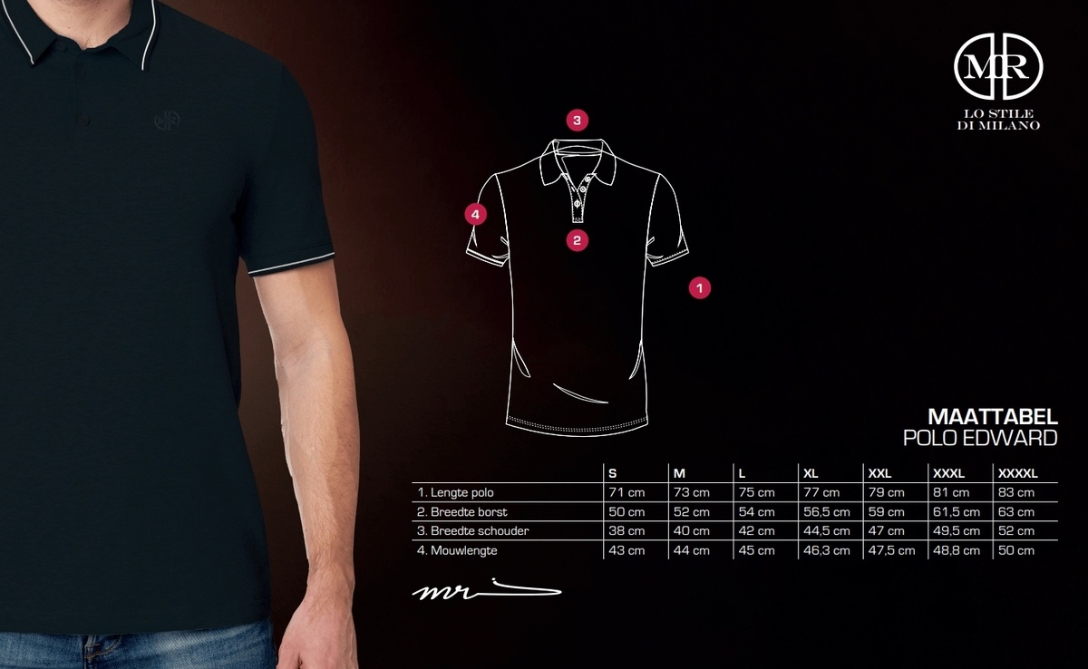 Per kleur heeft u de keuze uit 6 maten, van maat M tot en met 4XL, waardoor er altijd een perfecte match bestaat voor uw postuur en uw persoonlijke smaak.