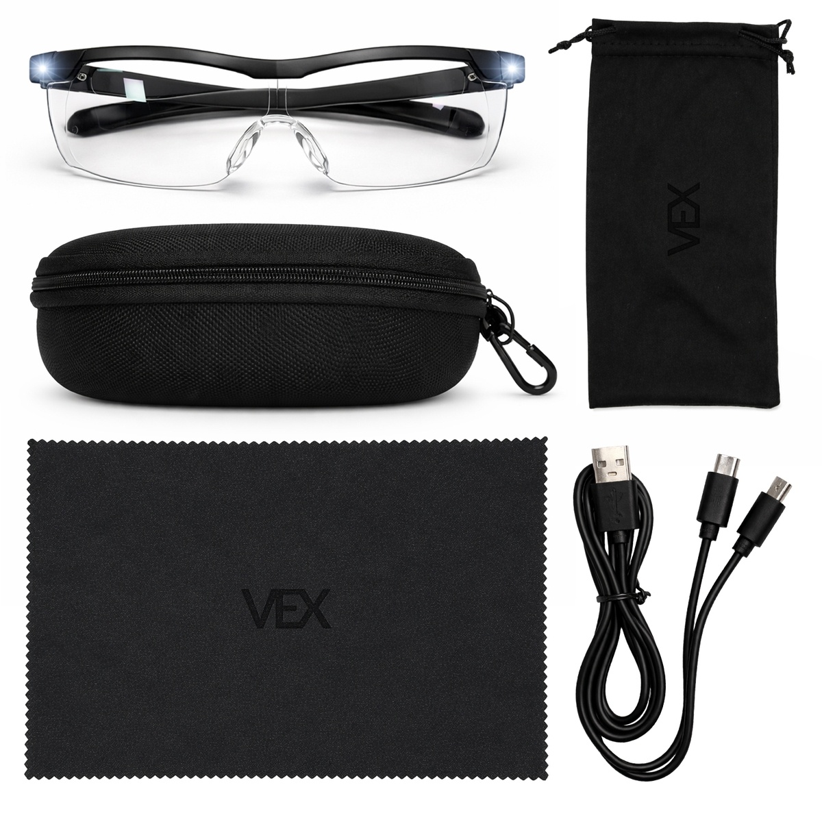 VEX Vergrootglas Bril met LED-licht - Vergroot tot 160% - Inclusief Accessoires