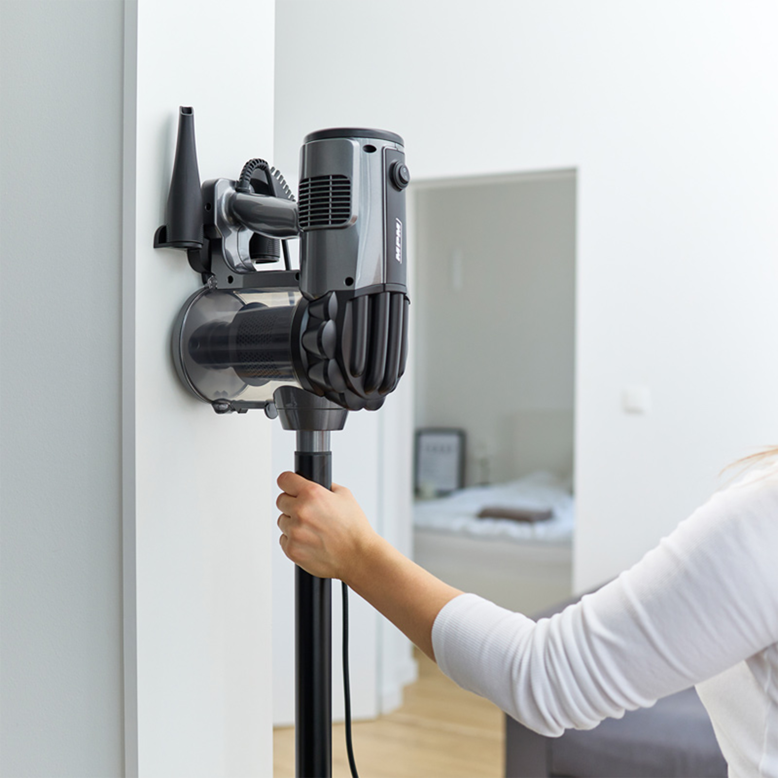 Met zijn lage gewicht en compacte formaat is deze stofzuiger ideaal voor dagelijks gebruik. Hij is makkelijk te hanteren, ook op trappen of in kleine ruimtes. Dankzij de meegeleverde opzetstukken bereikt u zelfs de lastigste hoekjes zonder moeite.
