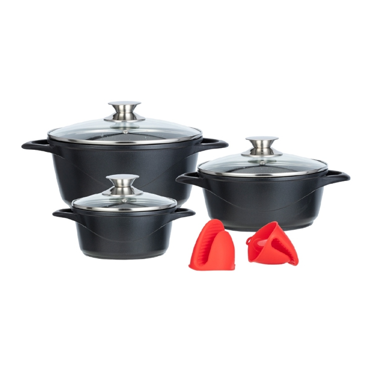 De Smile MGK-18 6-delige pannenset maakt dagelijks koken makkelijker en schoner. Met een duurzame anti-aanbaklaag, stijlvol design en gebruik op elk fornuis is deze set een slimme basis voor elk huishouden.