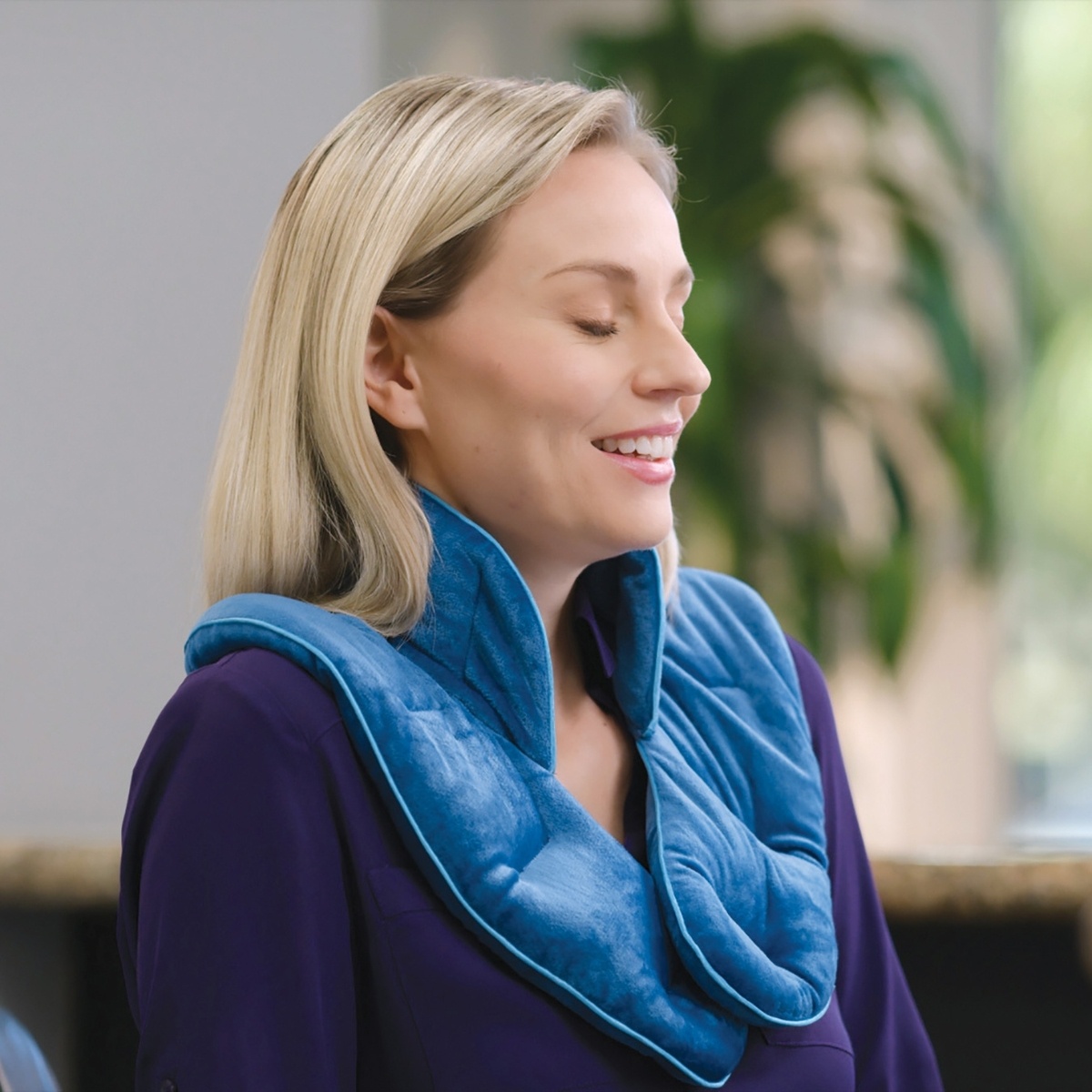 De vulling met kleikralen zorgt voor een verzwarend effect dat diepe druktherapie biedt. Dit helpt spanning en stress te verlichten en geeft een kalmerend gevoel. Het ergonomische ontwerp zorgt dat het kussen goed aansluit op nek en schouders, zodat u ongestoord kunt ontspannen.