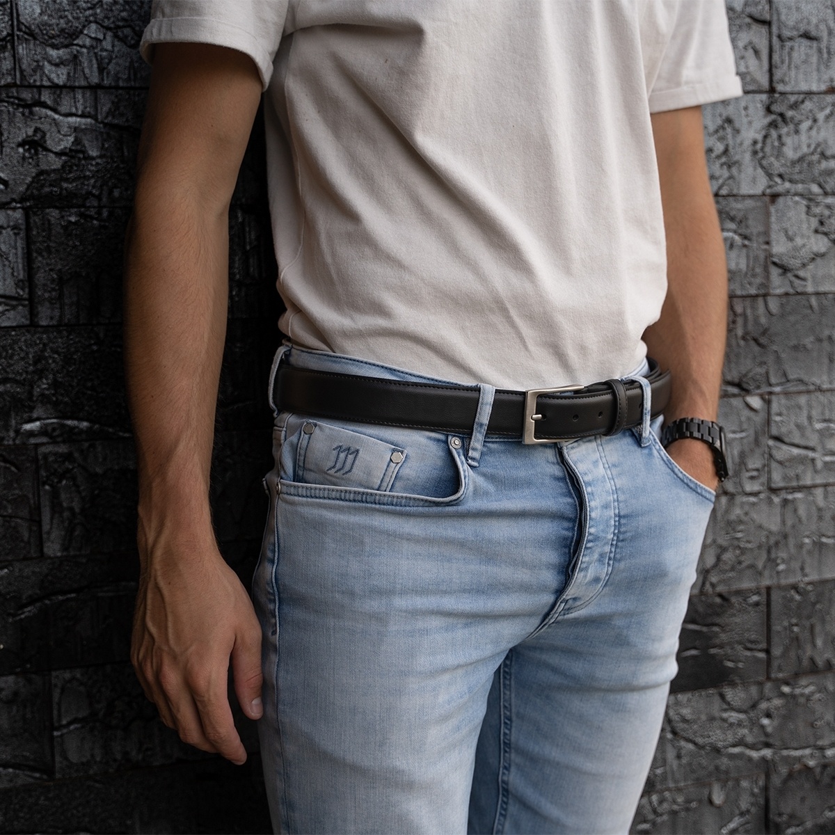 Ervaar tijdloze klasse met onze stijlvolle lederen riem. Gemaakt van soepel, glad leer, is hij ook beschikbaar in zwart, cognac en donkerbruin. De zilveren details voegen een vleugje verfijning toe aan elke look.